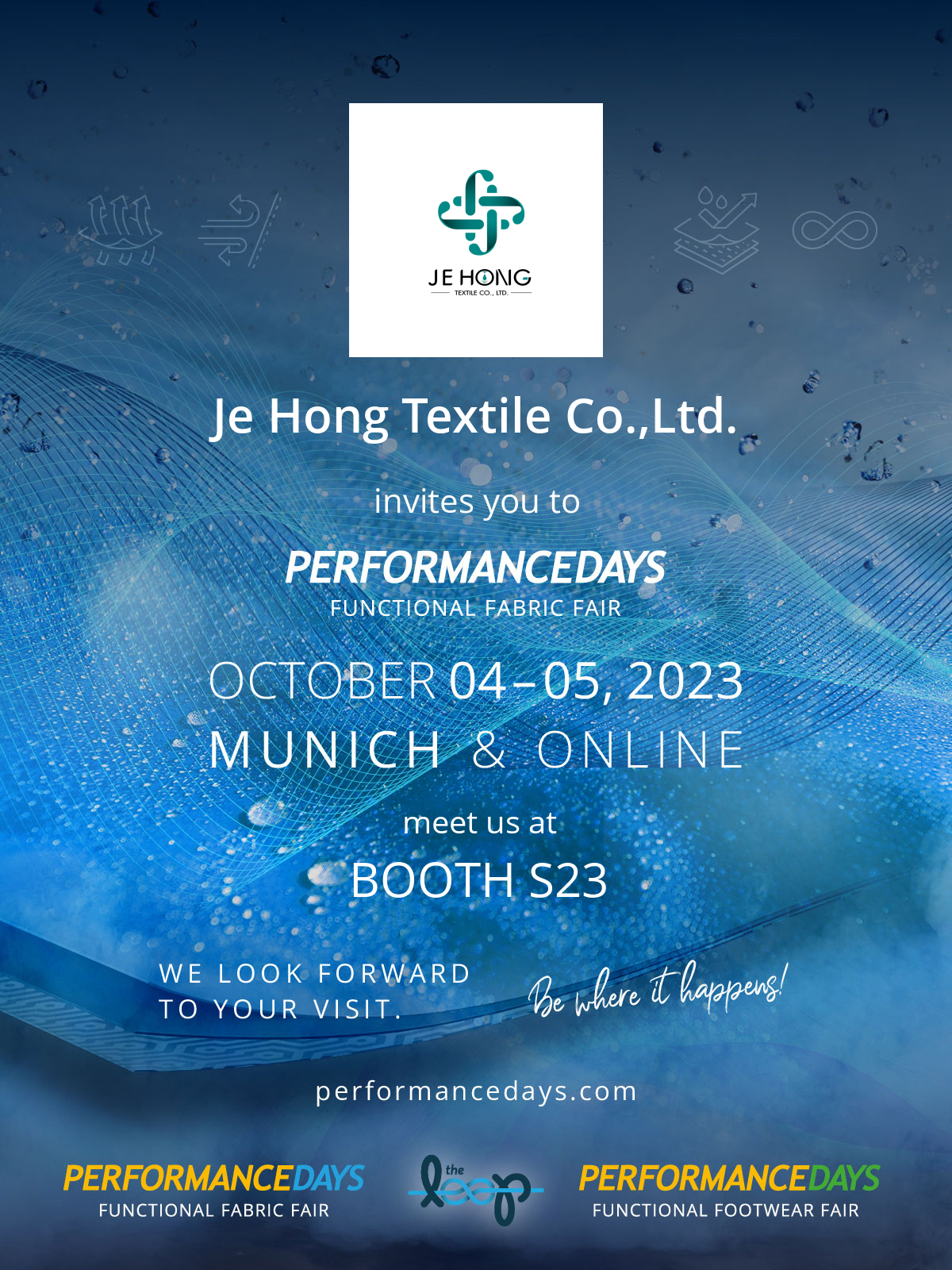 捷弘將於2023年10月4日至5日至德國慕尼黑參與PERFORMANCE DAYS秋季展會,歡迎各位一同共襄盛舉!